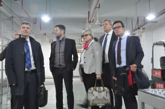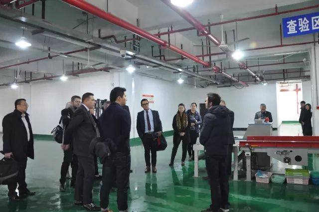 然后,代表团一行来到园区进出口监管场所,认真听取了海关对进出口货物从申报、查验到发行的整一流程,并参观了海关进出口的流水操作和保税仓库。王泉先生与外宾们侃侃而谈,专业地向他们介绍跨境进出口业务的物流模式。