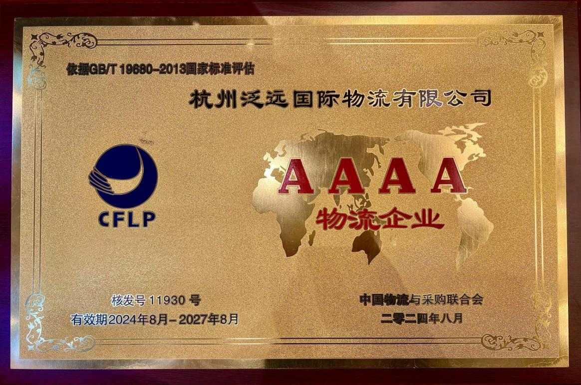 新闻中心公司新闻泛远国际正式授牌中国AAAA物流企业